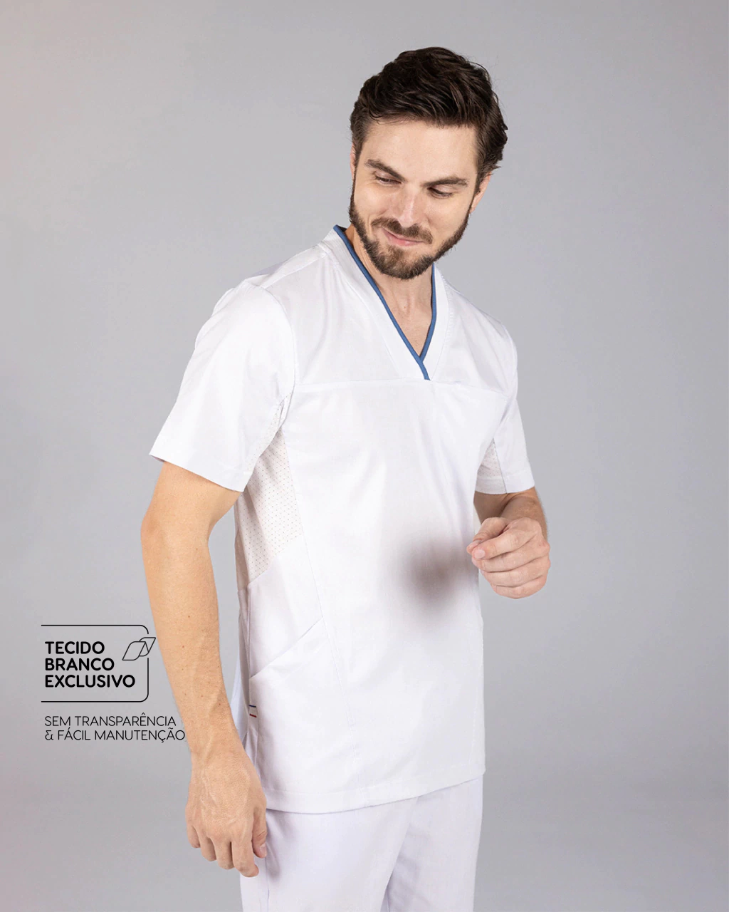 Modelagem inspirada no vestuário esportivo, ideal para profissionais de saúde que se movimentam intensamente ao longo do dia.